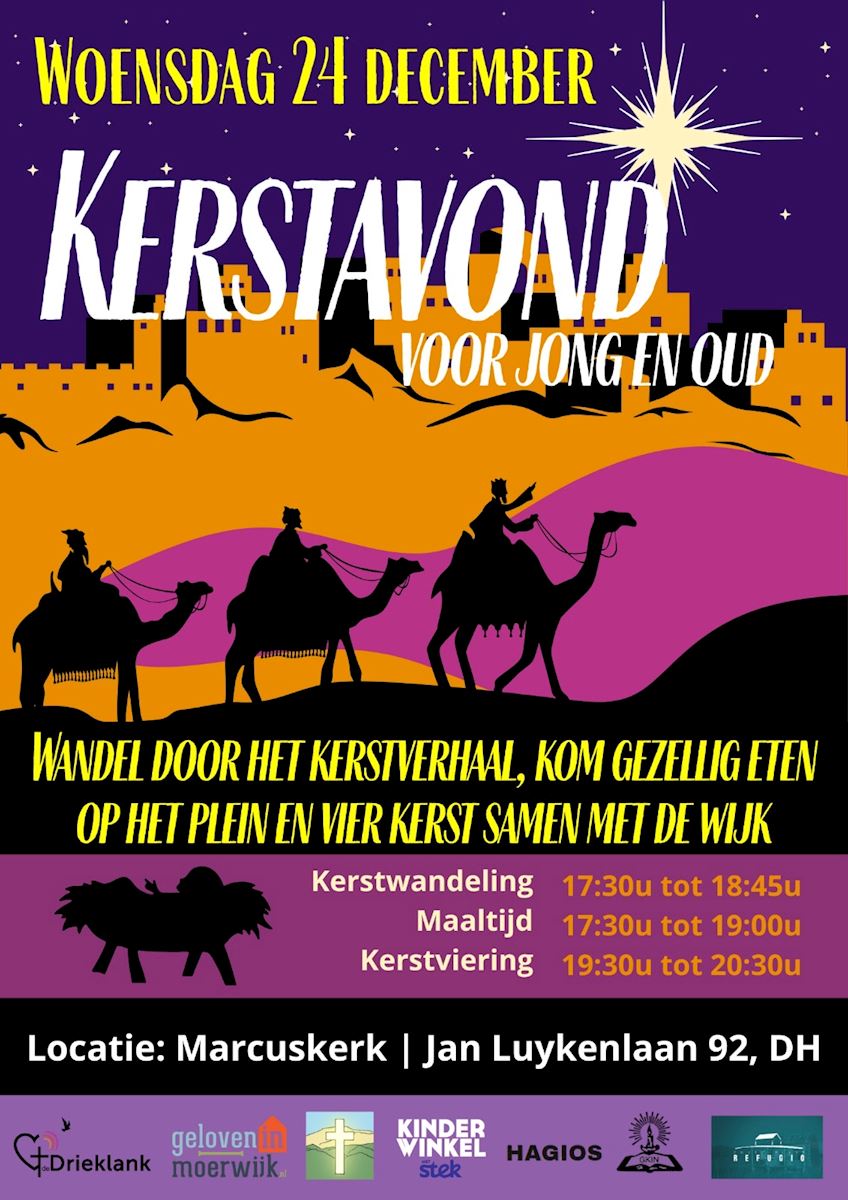 Op woensdag 24 december is het Kerstavond en zullen we traditiegetrouw een kerstwandeling organiseren door de wijk (start 17.30 uur), een warme maaltijd aanbieden op het plein voor de kerk en daarna start de kerstavonddienst om 19.30 uur. Samen met Geloven in Moerwijk, de Kinderwinkel, Hagios en de Nebokerk organiseren we deze avond. Van harte welkom voor een ieder, jong en oud!